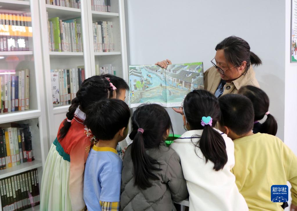 4月22日,志愿者在奎照路菜市場(chǎng)的書(shū)屋帶領(lǐng)攤主和周邊務(wù)工人員的孩子們閱讀繪本。