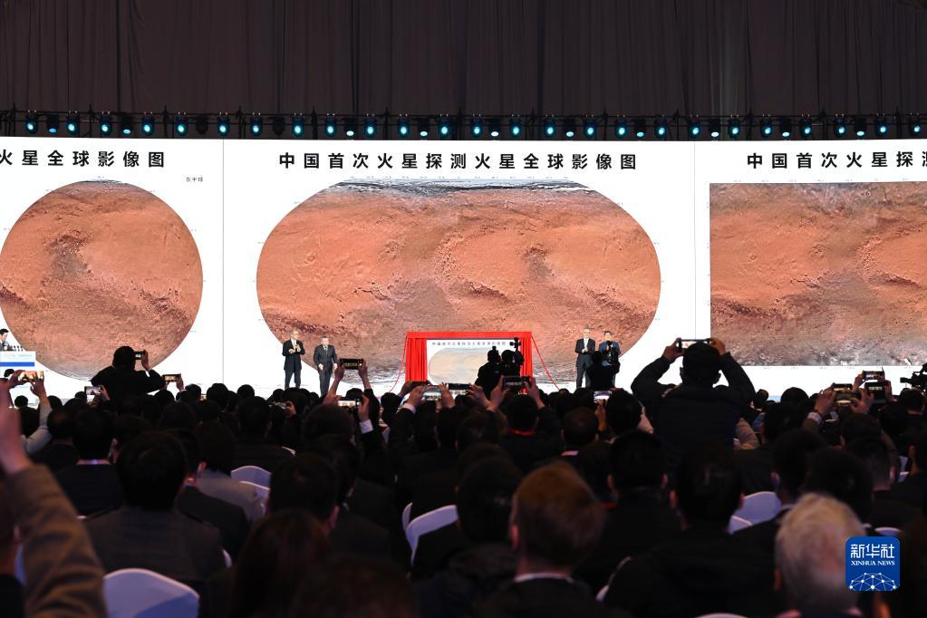 4月24日,在2023年“中國航天日”主場(chǎng)活動(dòng)啟動(dòng)儀式上,國家航天局和中國科學(xué)院聯(lián)合發(fā)布中國首次火星探測火星全球影像圖。