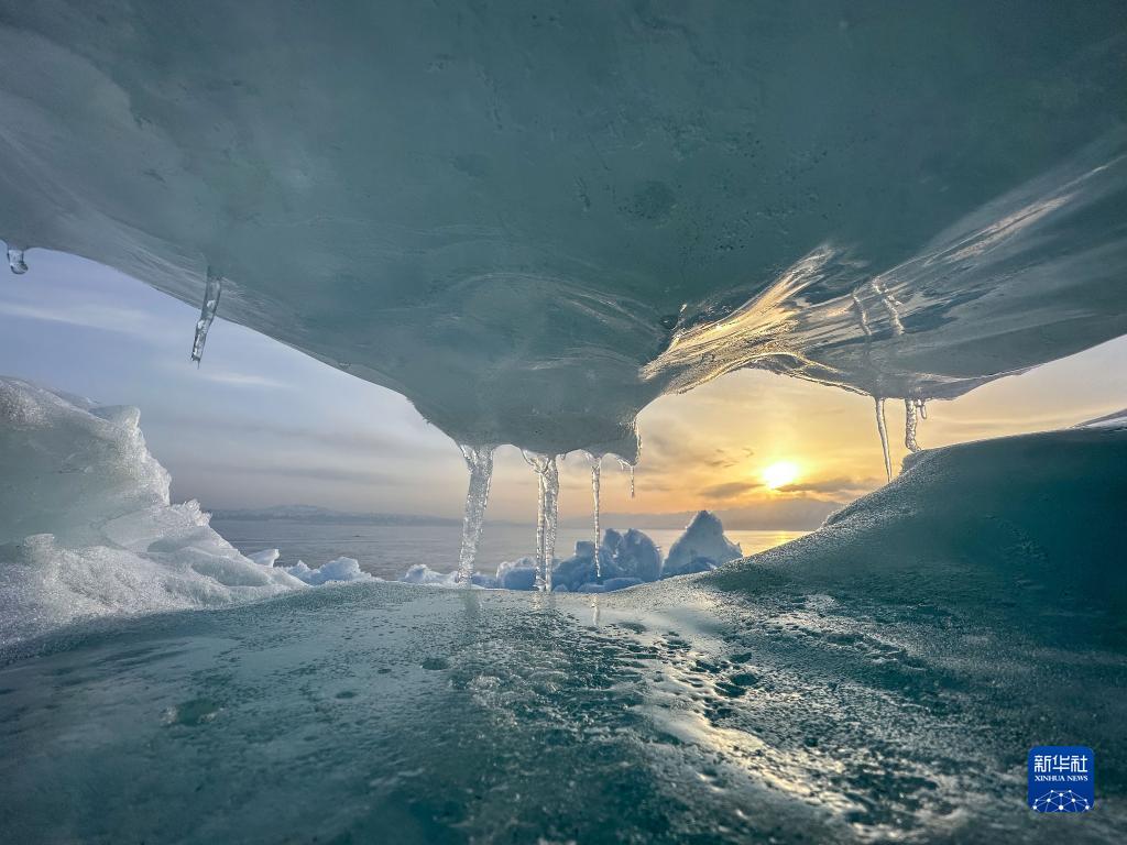 新疆博爾塔拉蒙古自治州,夕陽(yáng)下的賽里木湖(4月6日攝)。