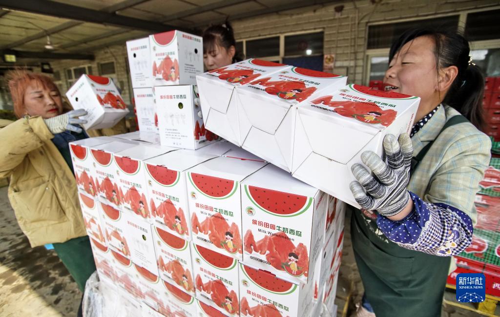 當日,北京市大興區龐各莊鎮政府和電商平臺聯(lián)合舉行了“頭茬西瓜上市 電商助力增收”的上市發(fā)車(chē)儀式,3000多個(gè)凌晨采摘的頭茬西瓜通過(guò)冷鏈運輸送到消費者手上。位于北京南部的龐各莊鎮是我國北方著(zhù)名的西瓜產(chǎn)銷(xiāo)區。近年來(lái),龐各莊鎮大力發(fā)展電商平臺直銷(xiāo)西瓜,并建設了西瓜種產(chǎn)銷(xiāo)溯源系統,助力提高瓜農收入。