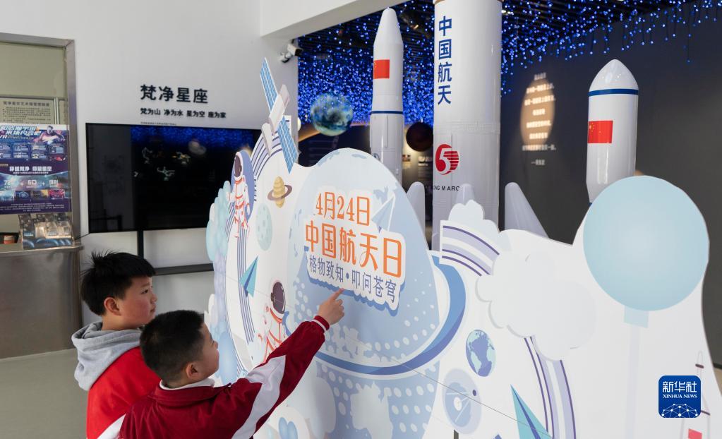 4月24日,學(xué)生在貴州省銅仁市中南門(mén)歷史文化旅游區梵凈星空藝術(shù)館內參觀(guān)航天模型。