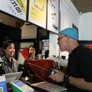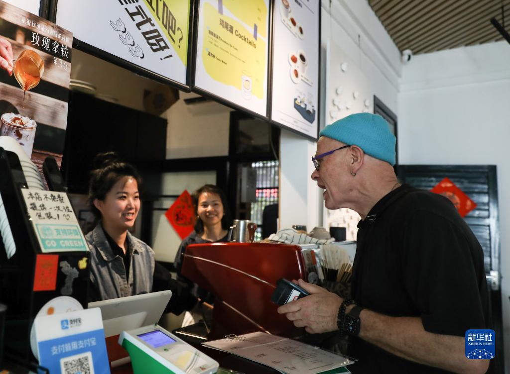 托爾斯滕·尤雷爾在景德鎮一家咖啡店點(diǎn)單(4月20日攝)。