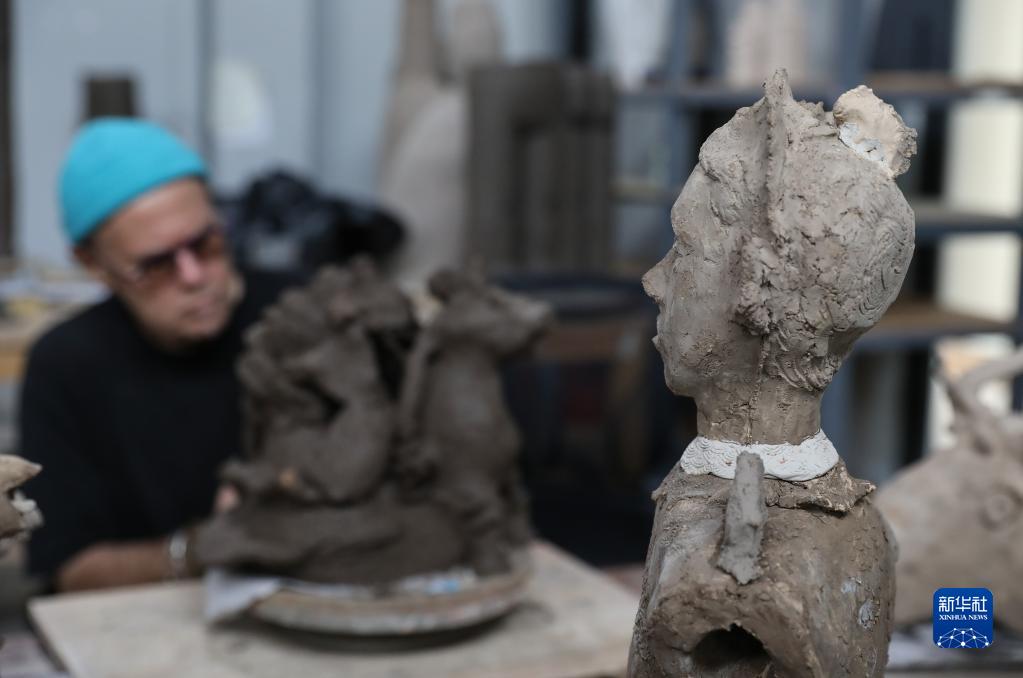 托爾斯滕·尤雷爾在江西景德鎮陶溪川陶瓷文化創(chuàng )意園自己的工作室內創(chuàng )作(4月20日攝)。