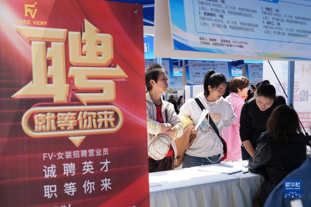 4月25日,求職者在重慶市北碚區吾悅廣場(chǎng)舉行的民營(yíng)企業(yè)服務(wù)月專(zhuān)場(chǎng)招聘會(huì )現場(chǎng)了解用工信息。