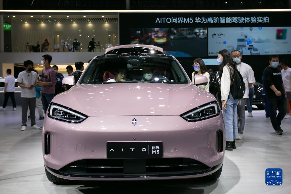 4月25日拍攝的亮相上海車(chē)展的最新發(fā)布的AITO問(wèn)界M5。