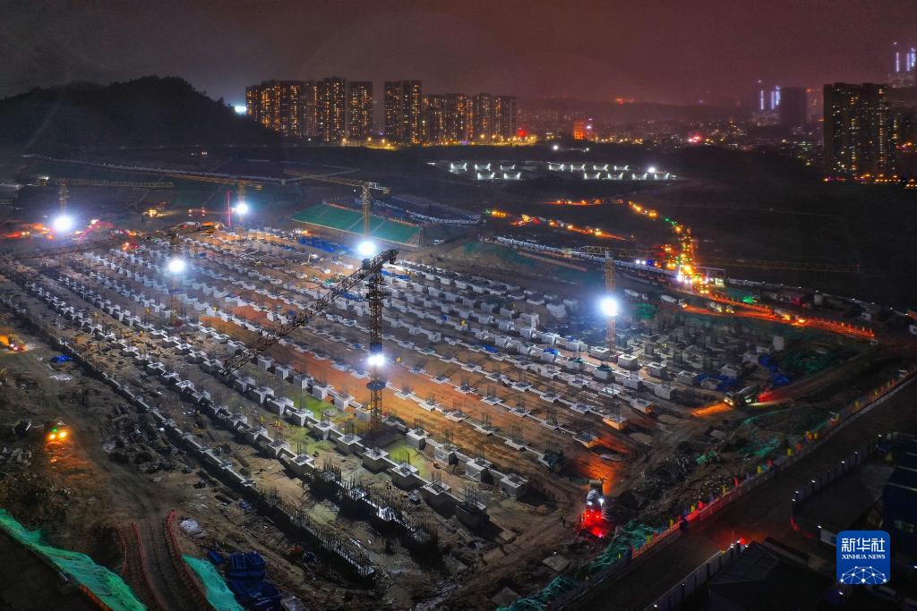 建設中的深圳地鐵5號線(xiàn)上水徑停車(chē)場(chǎng)正在進(jìn)行底板獨立基礎混凝土澆筑和鋼筋籠綁扎作業(yè)(4月25日攝,無(wú)人機照片)。