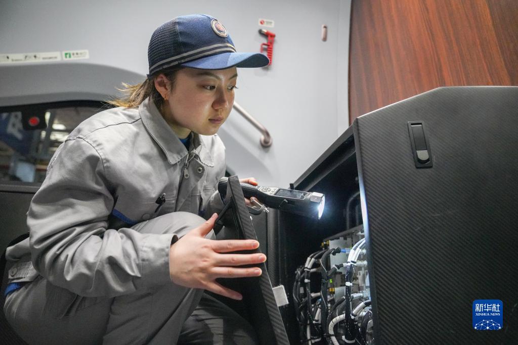 在中國鐵路哈爾濱局集團有限公司哈爾濱動(dòng)車(chē)段整備庫,“雪絨花”女子班組的機械師們正緊張地為動(dòng)車(chē)段配屬的動(dòng)車(chē)組進(jìn)行檢修作業(yè),為即將到來(lái)的“五一”小長(cháng)假鐵路運輸做好運力安全保障。