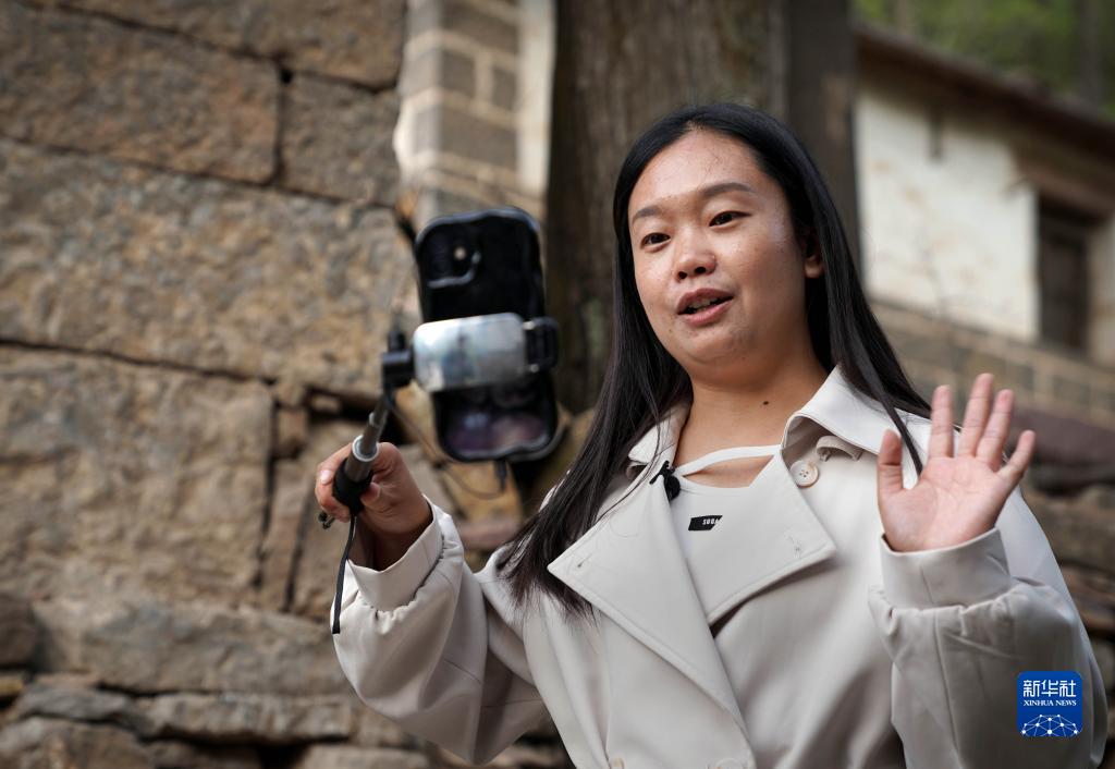 陳曉麗在村里直播(4月18日攝)。新華社記者 李安 攝