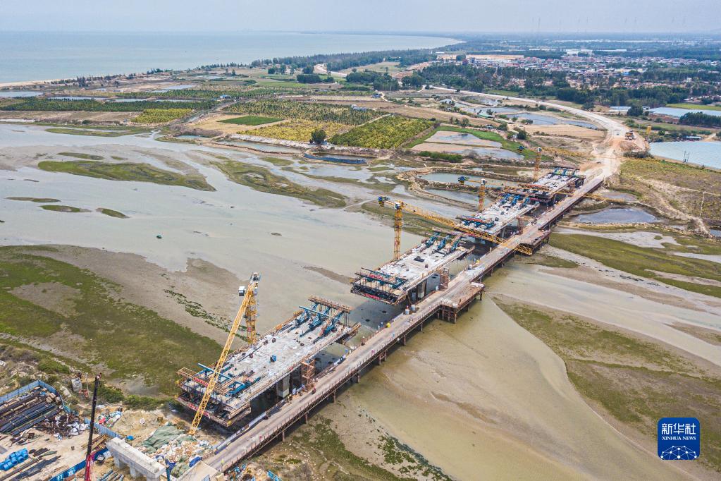 4月25日拍攝的建設中的海南環(huán)島旅游公路東方段感城港大橋(無(wú)人機照片)。