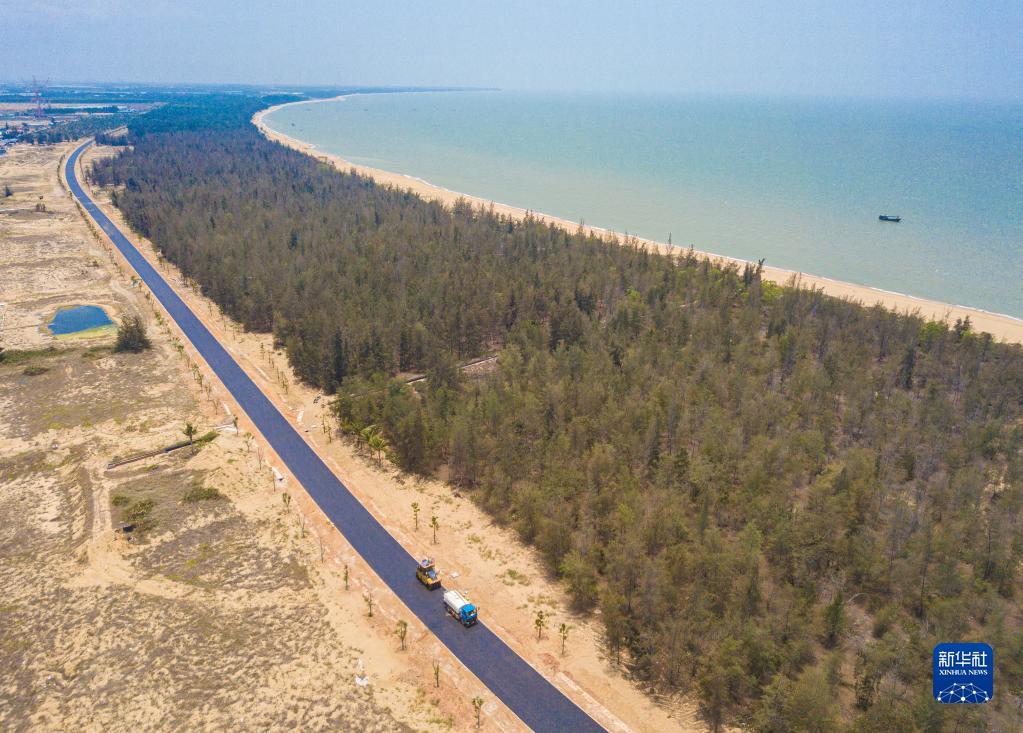 4月25日拍攝的建設中的海南環(huán)島旅游公路東方段(無(wú)人機照片)。