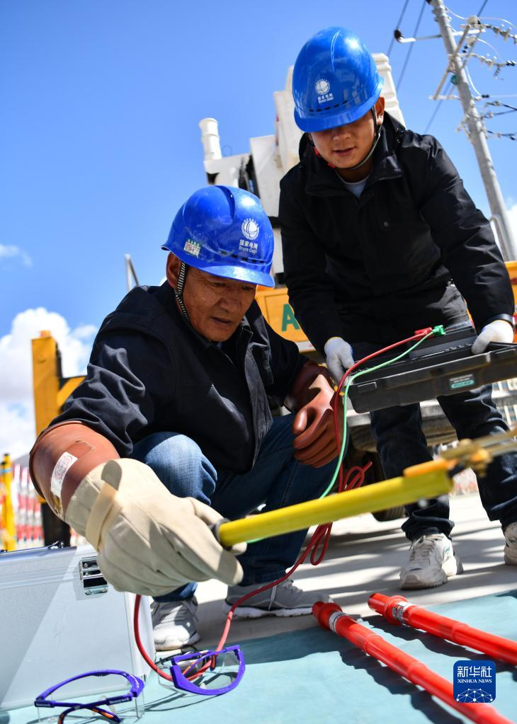 4月26日,扎西尼瑪(左)在進(jìn)行絕緣電阻檢測。