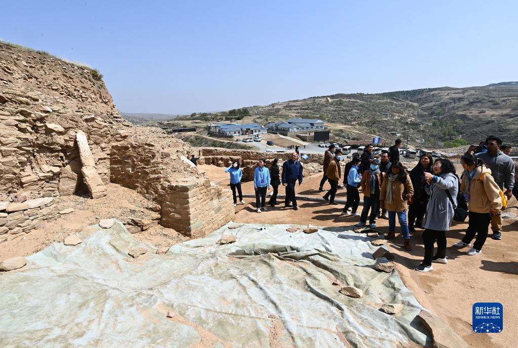 4月26日,外賓在陜西石峁遺址皇城臺遺址參觀(guān)調研。