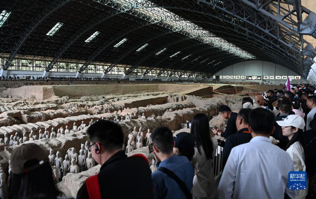 “五一”假期將至,位于陜西省西安市臨潼區的秦始皇帝陵博物院已迎來(lái)節前游覽小高峰,單日游客接待量超過(guò)5萬(wàn)人次。