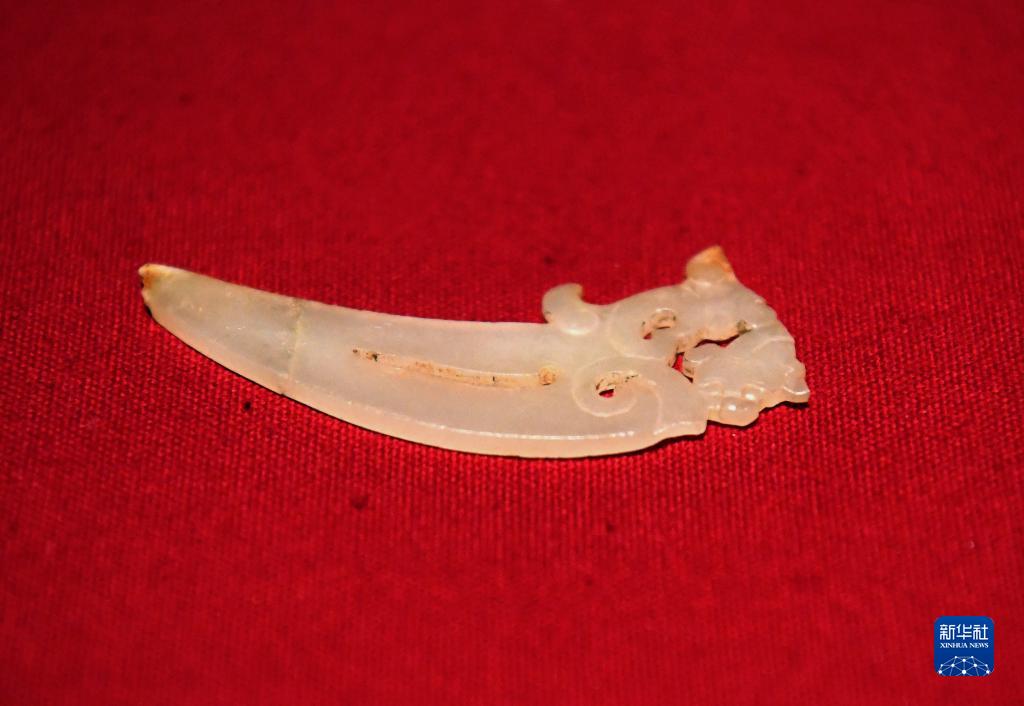 這是曹操高陵遺址博物館內展出的玉觿(4月22日攝)。