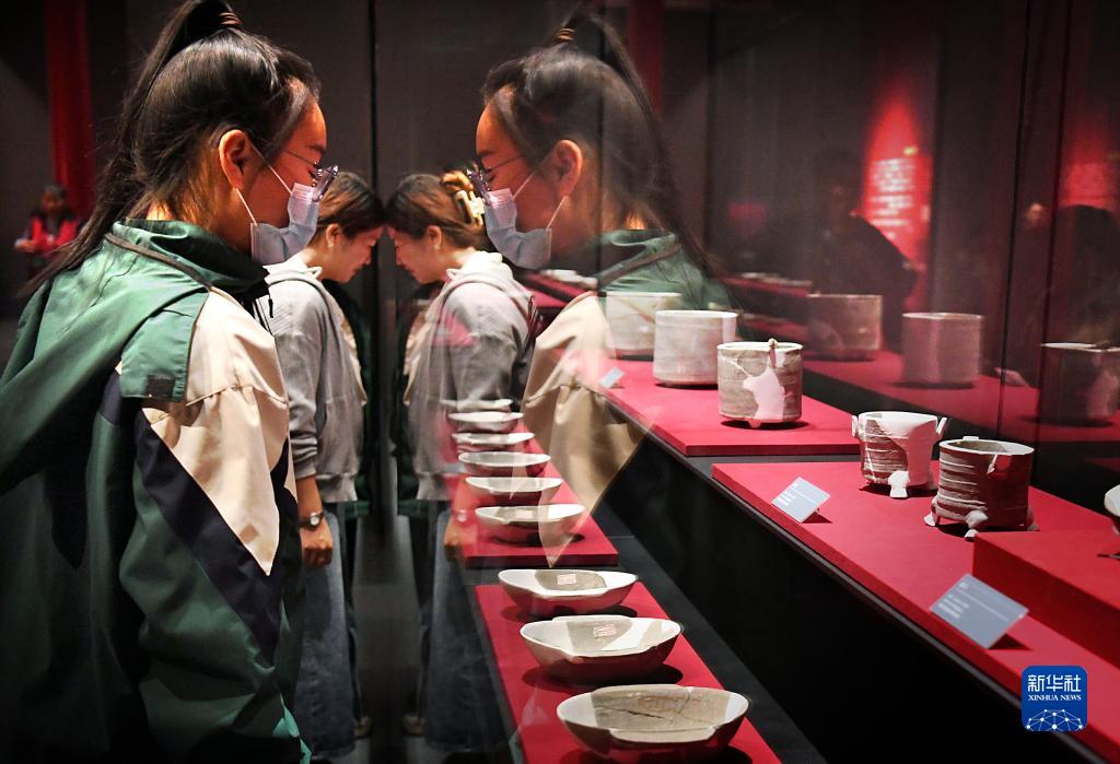 4月27日,參觀(guān)者在曹操高陵遺址博物館內觀(guān)看展品。