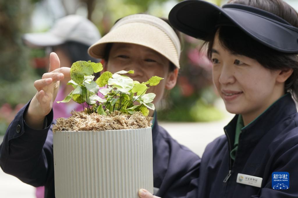 4月27日,國家植物園的植物專(zhuān)家在觀(guān)察荷葉鐵線(xiàn)蕨的生長(cháng)情況。