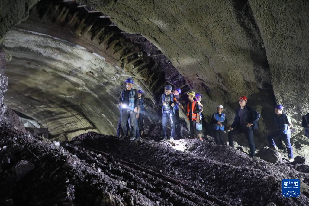 4月27日,下關(guān)隧道貫通后,建設者在貫通點(diǎn)查看。