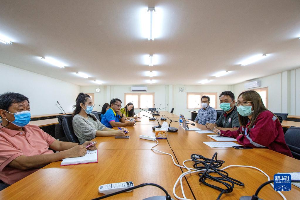 潘納洛(右一)在泰國中泰鐵路一期工程項目部監理總站和同事一起開(kāi)會(huì )(2月24日攝)。新華社記者 王騰 攝