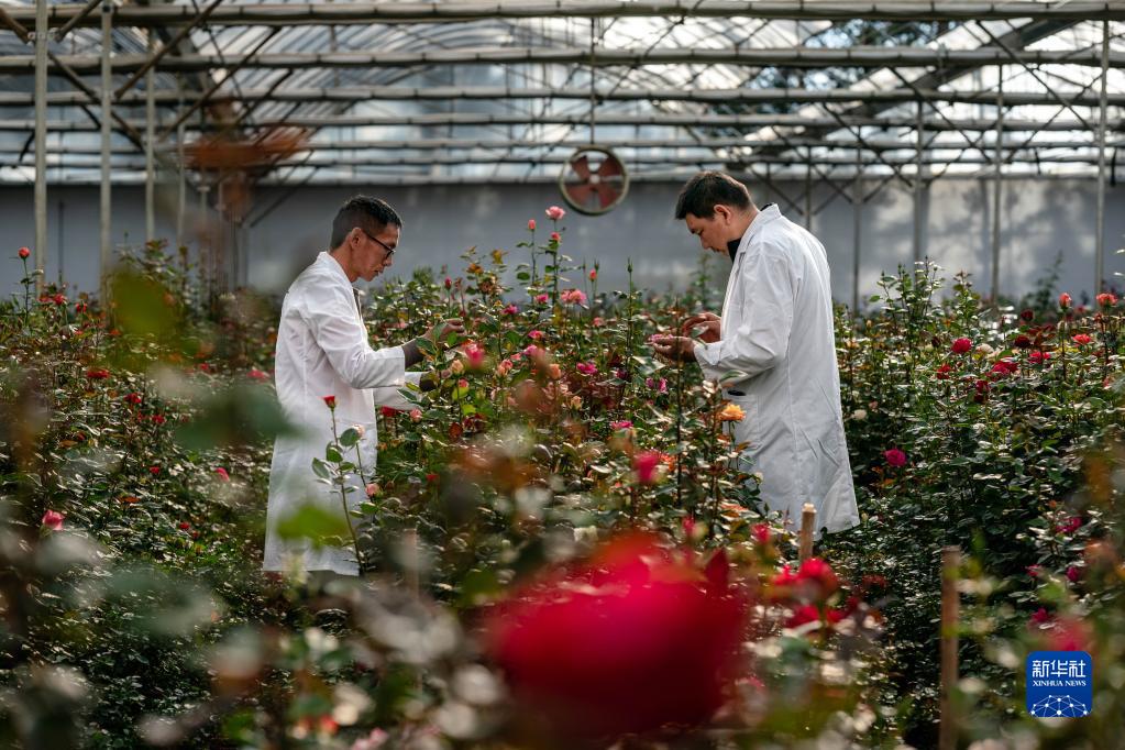 云南錦科花卉工程研究中心技術(shù)人員在篩選玫瑰推廣新品種(4月3日攝)。