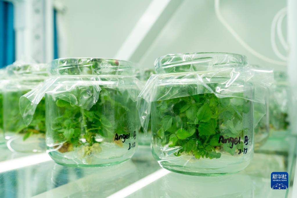 這是在李淑斌實(shí)驗室拍攝的無(wú)菌瓶中培養的月季苗(4月20日攝)。