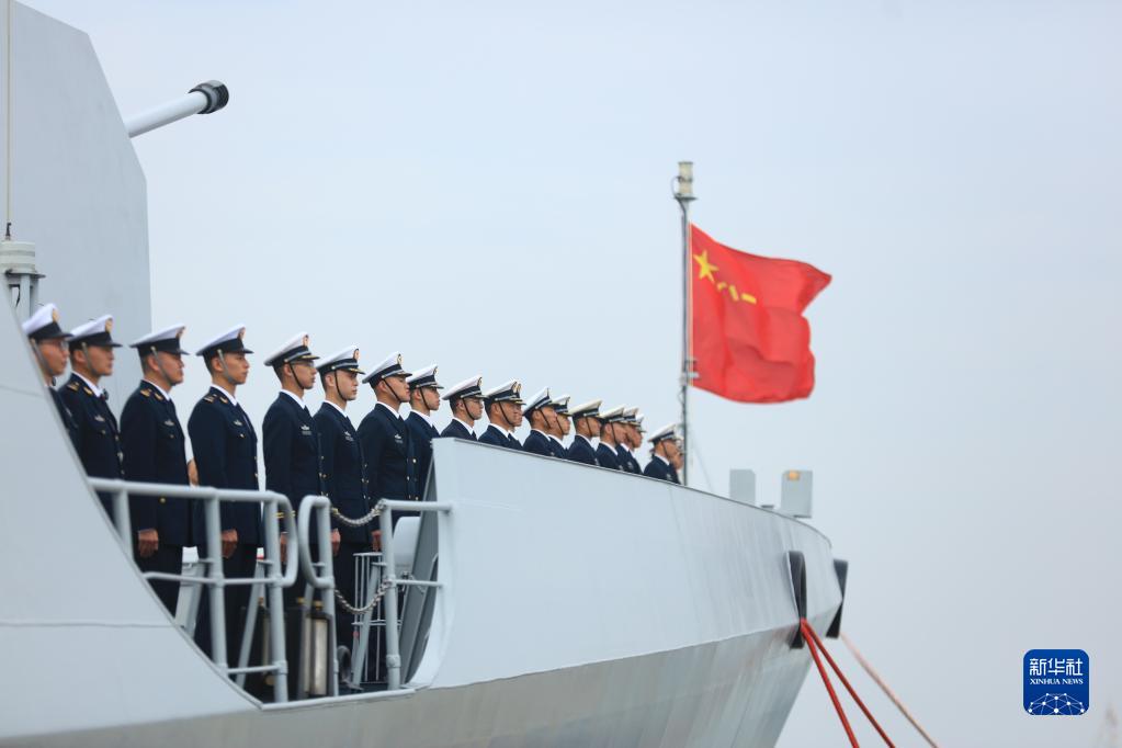 4月28日,中國海軍第44批護航編隊從浙江舟山某軍港解纜起航,官兵們列隊甲板整裝待發(fā)。