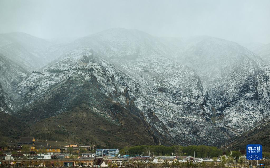 4月28日拍攝的內蒙古自治區呼和浩特市北郊的大青山自然保護區雪景。