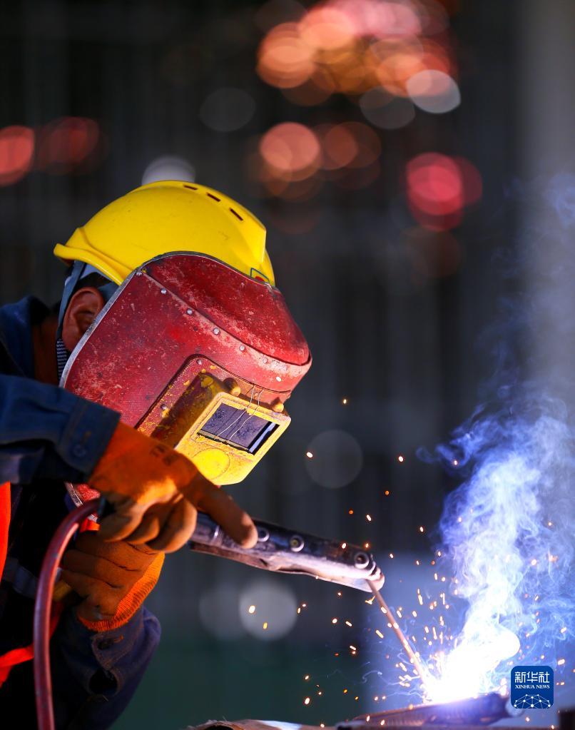 4月28日,在位于山東省青島市即墨區的中建八局四公司一處項目工地,建筑工人參加焊接項目比賽。