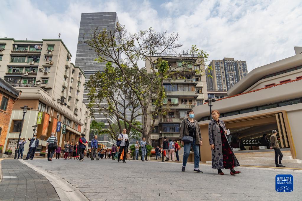 4月28日,重慶市九龍坡區謝家灣街道民主村片區城市更新項目(一期)正式竣工亮相,市民游客前來(lái)打卡。