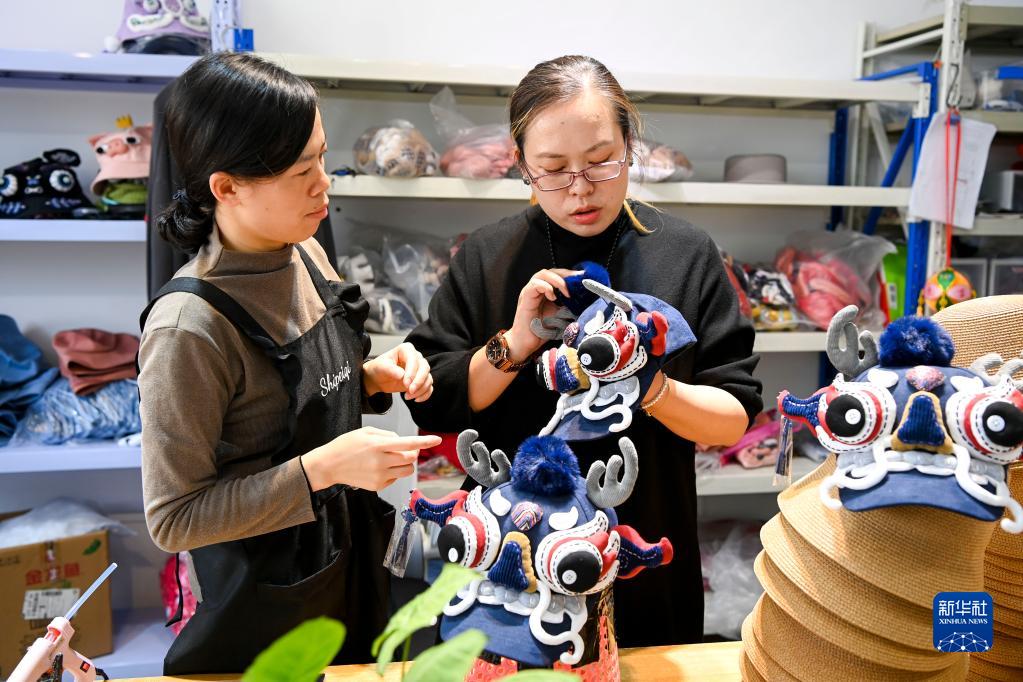 4月25日,劉思蔚(右)在位于廣西桂林的一處生產(chǎn)車(chē)間指導工作人員縫制產(chǎn)品。