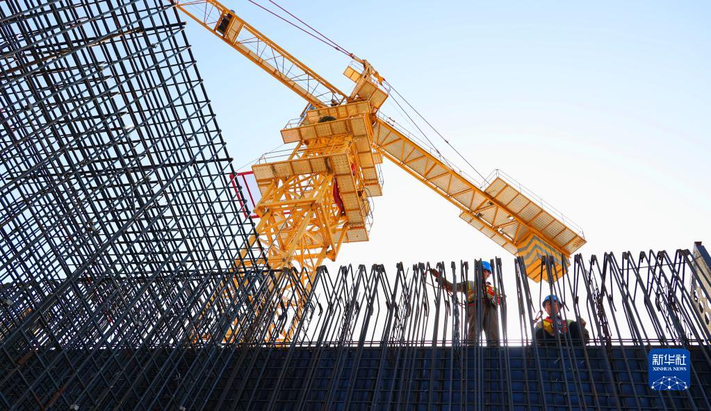 4月29日,工人在江蘇連(云港)宿(遷)高速公路善后河特大橋工程現場(chǎng)施工。
