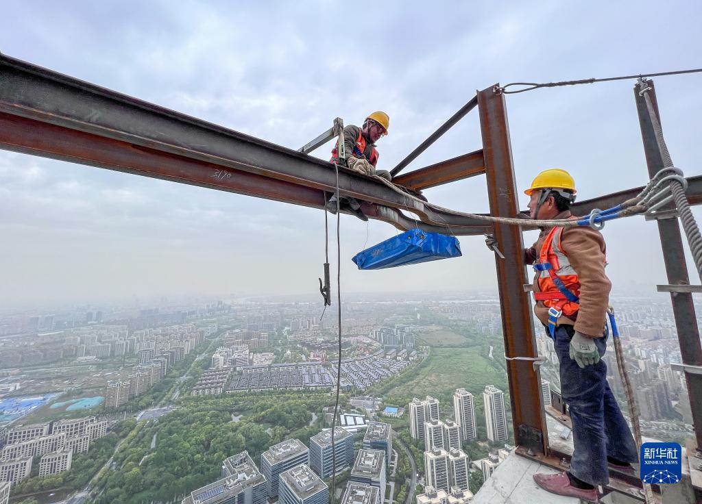 4月29日,工人在位于上海的中建三局一公司華東公司某建設工地施工。