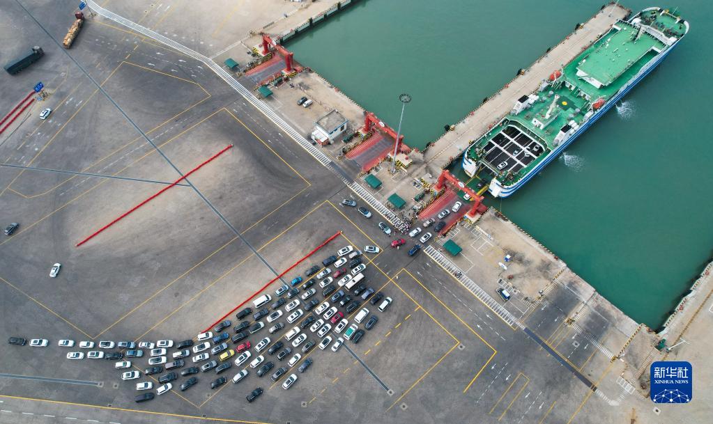 4月29日,車(chē)輛在??谛潞8叟抨牭谴o(wú)人機照片)。