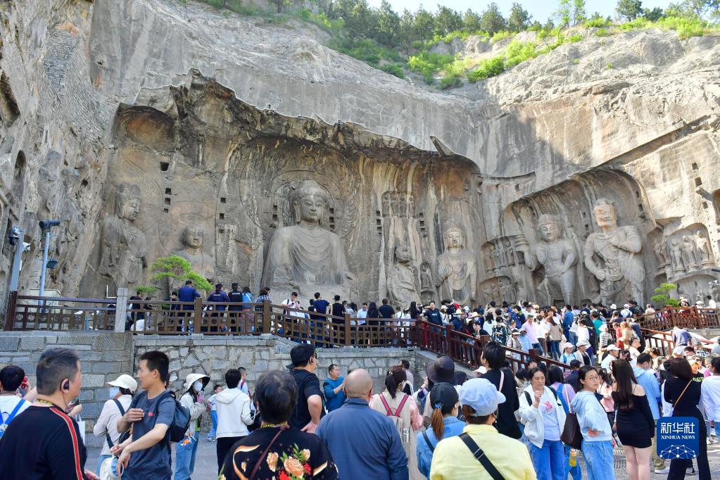 4月29日,游客在河南洛陽(yáng)龍門(mén)石窟景區游覽。