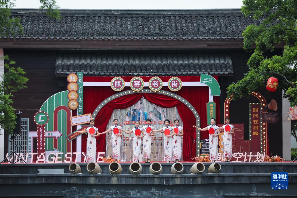 4月29日,演員在浙江省杭州市余杭區瓶窯老街表演。