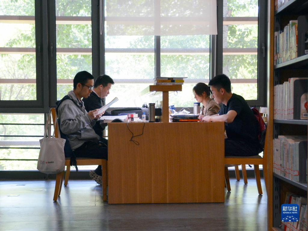 4月29日,在北京外國語(yǔ)大學(xué)圖書(shū)館,學(xué)生們利用假期讀書(shū)“充電”。