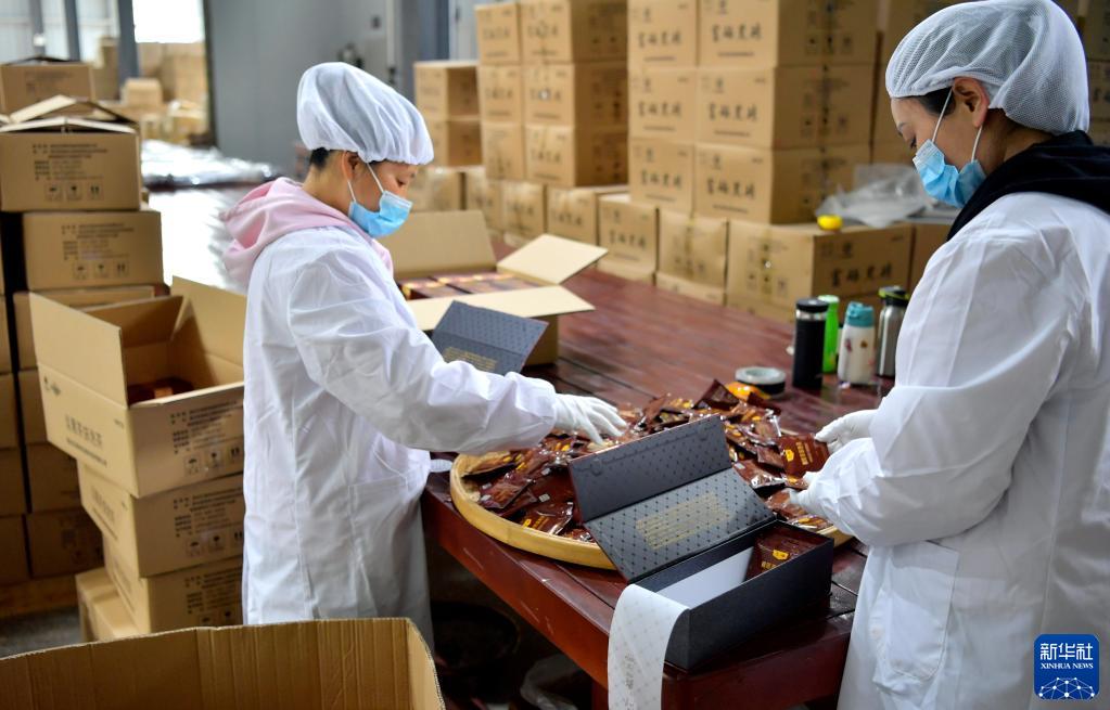 4月29日,在湖北省宣恩縣一家黑茶企業(yè),工人包裝黑茶。