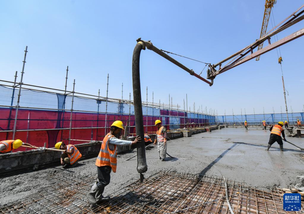 4月30日,中建三局的工人在成都芯谷產(chǎn)業(yè)功能區配套項目澆筑混凝土。