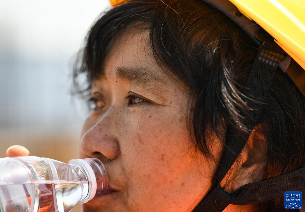4月30日,中建三局的工人在成都芯谷產(chǎn)業(yè)功能區配套項目施工間隙喝水。