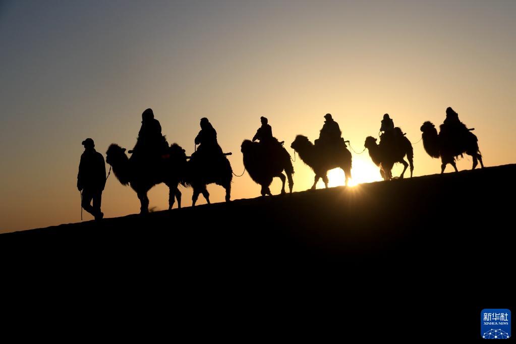騎著(zhù)駱駝穿行大漠,遙想絲綢之路繁華盛景,是游客在甘肅敦煌的重要體驗項目。在距敦煌鳴沙山月牙泉景區最近的月牙泉村,村民們馴養著(zhù)2000多峰駱駝,編有700多個(gè)駝號,這些特殊的“員工”每天輪流在鳴沙山月牙泉景區“上班”。