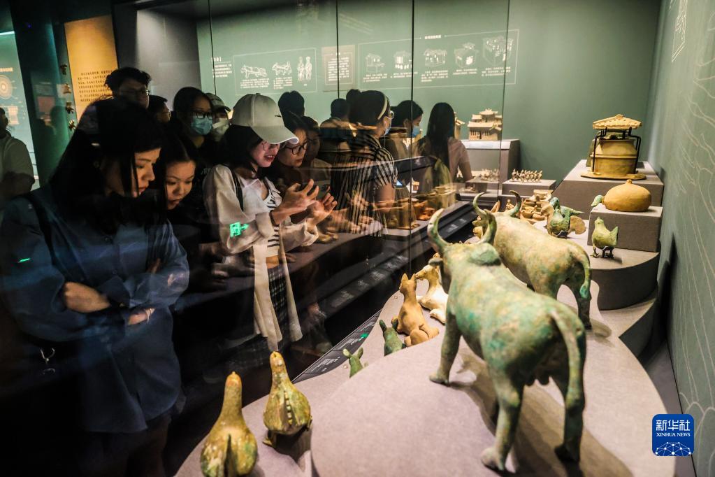 4月30日,游客在廣西壯族自治區博物館參觀(guān)廣西古代文明陳列展。