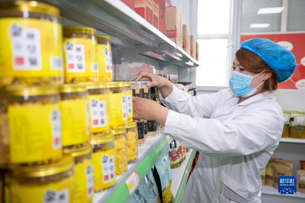 5月1日,在寧夏銀川市永寧縣閩寧鎮禾美電商車(chē)間,工作人員在整理商品。