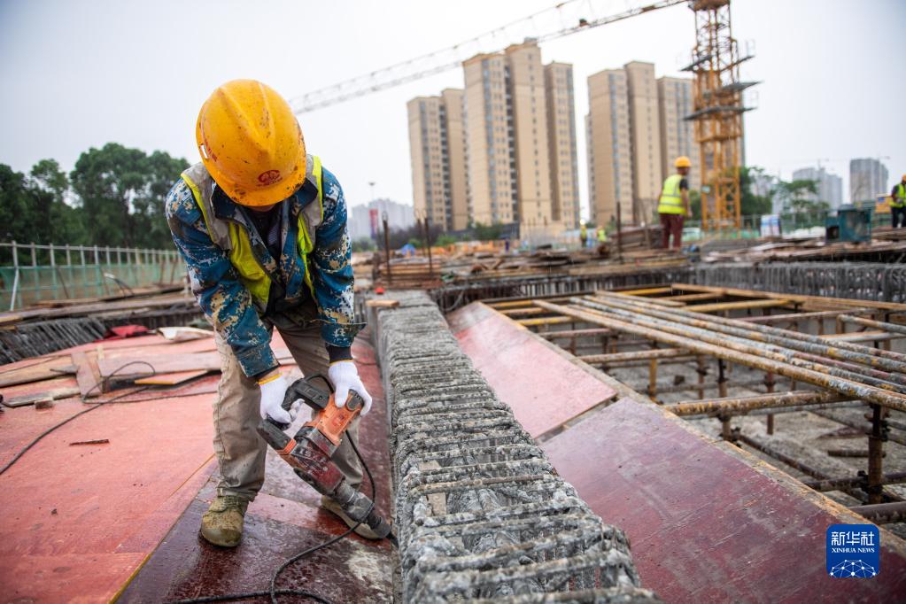 5月2日,在沅江市中心城區水環(huán)境綜合治理一期工程團山橋建設現場(chǎng),中鐵五局二公司工人在橋面上施工,為混凝土澆筑做準備。