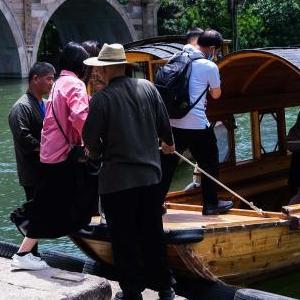 5月2日,游客進(jìn)入濮院時(shí)尚古鎮內游覽。