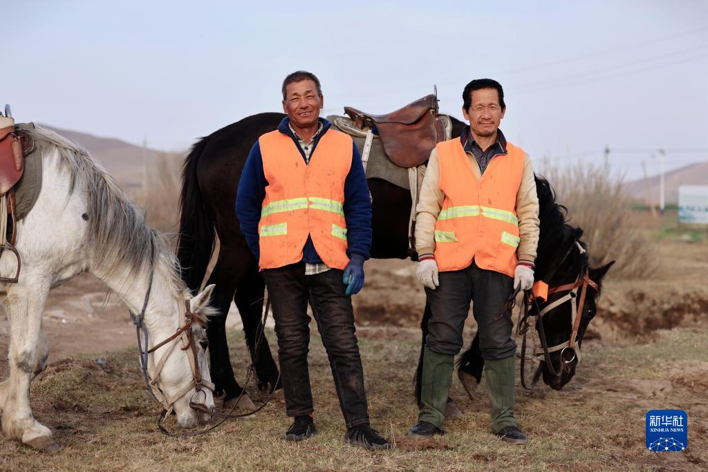河北省承德市豐寧滿(mǎn)族自治縣大灘鎮扎拉營(yíng)村的護林員趙世海(左)和羅金寶在海留圖國家濕地公園(5月2日攝)。