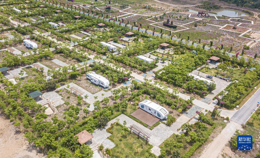 5月1日在海南花梨谷文化旅游區拍攝的房車(chē)庭院(無(wú)人機照片)。