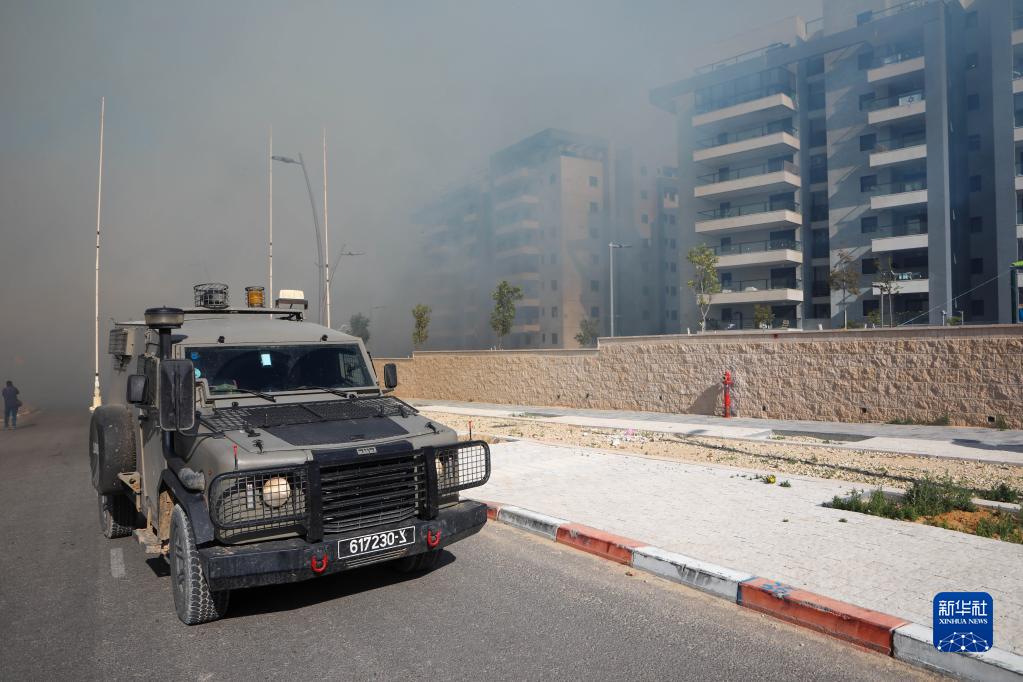 5月2日,在以色列南部城市斯代羅特,一處建筑工地遭火箭彈襲擊。