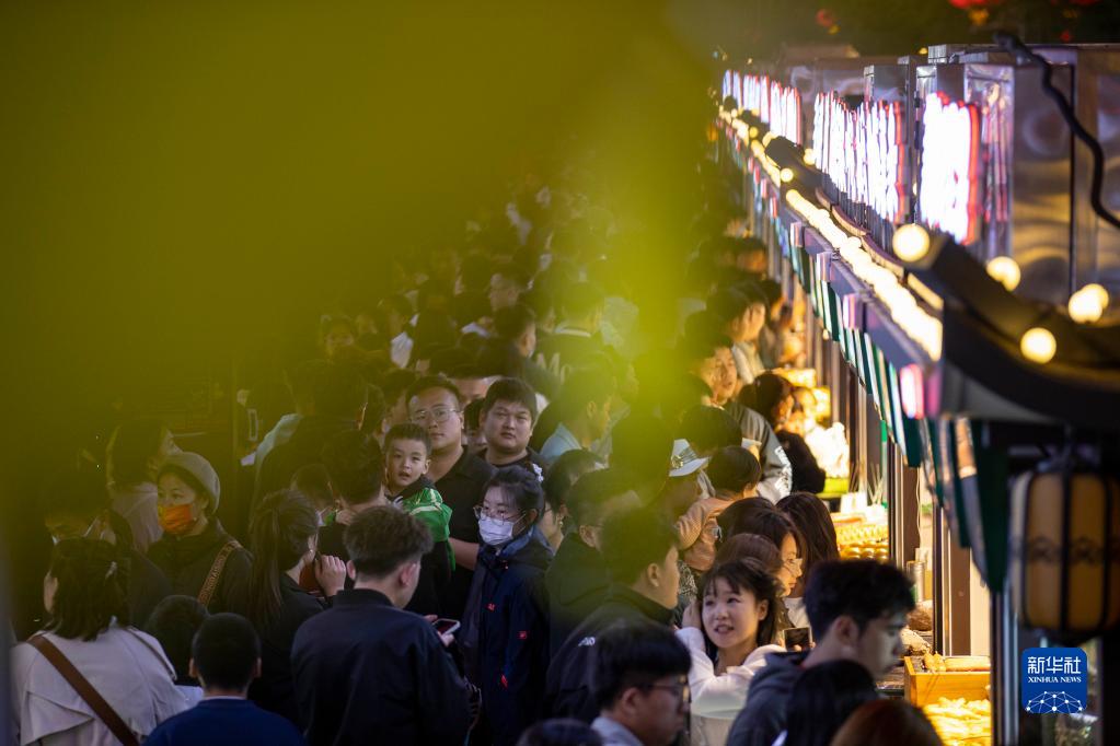 5月1日,游客在寧夏銀川市西夏區懷遠觀(guān)光夜市游覽。