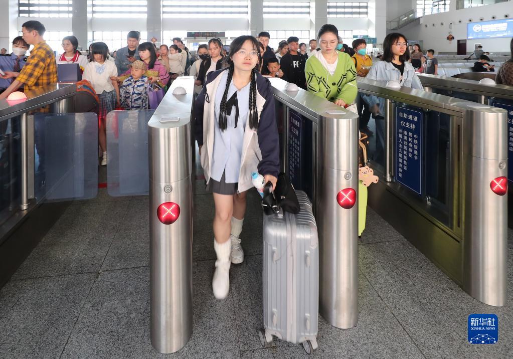 5月3日,旅客在滬昆高鐵貴州銅仁南站進(jìn)站乘車(chē)。