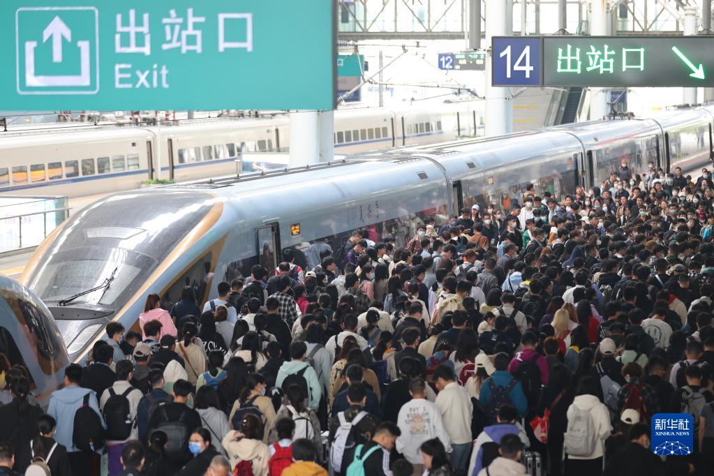 5月3日,剛下車(chē)的旅客在南京火車(chē)站準備出站。