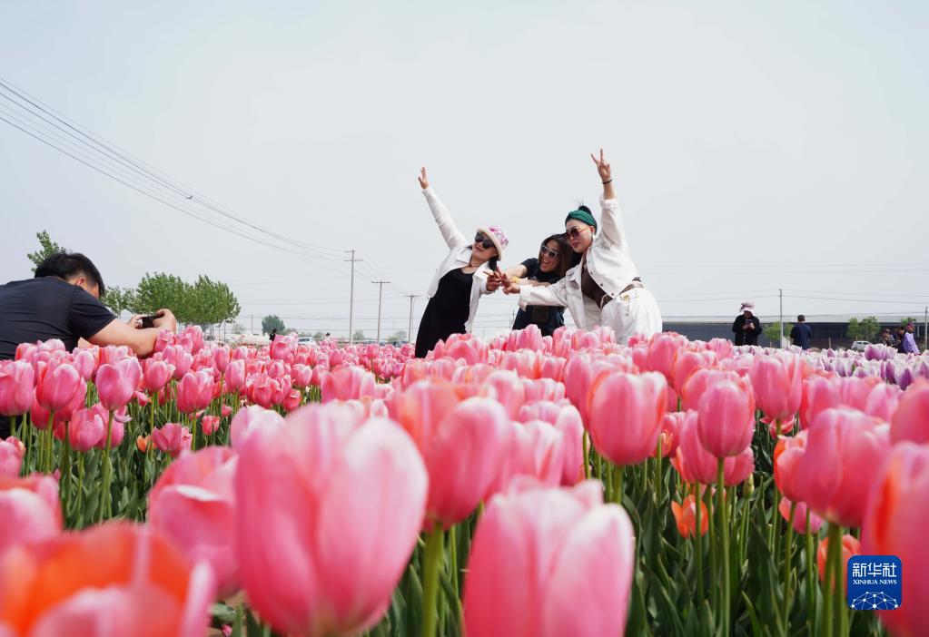 5月3日,游客在河北省灤南縣東黃坨鎮閆莊戶(hù)村郁金香種植基地拍照。